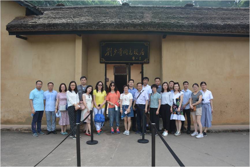 教职工党员们在院党委领导班子的带领下,首先来到位于中国湖南省宁乡县花明楼炭子冲的刘少奇故居。1898年11月24日,刘少奇诞生于此,并在此度过了童年和少年时代。同志们顶着烈日,走进故居,从一砖一瓦中感受先辈情怀,缅怀革命历史。