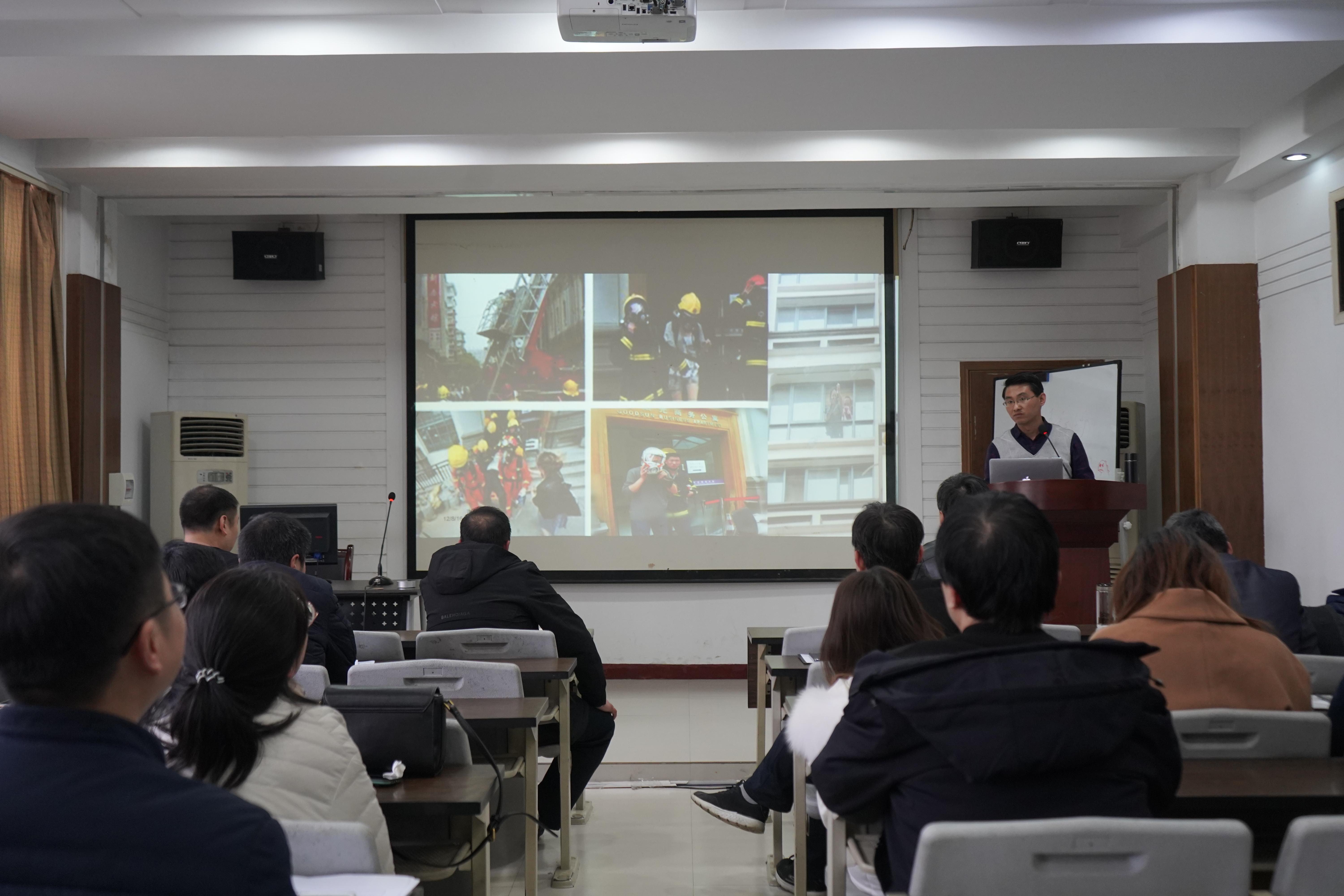 田国栋老师结合近年来的火灾案例特别是校园实验室、高层建筑、电气火灾等案例,列举了大量实例和现场的图片,展示缺乏消防意识和消防知识的严重危害。结合实际,对火灾特点、预防火灾的基本常识,火灾发生、发展、熄灭的基本规律和特点等方面知识进行了讲解,传授了防范措施和如何对初期火灾进行扑救,以及如何组织人员疏散、火场自救逃生方法、消防器材的正确使用方法等知识。