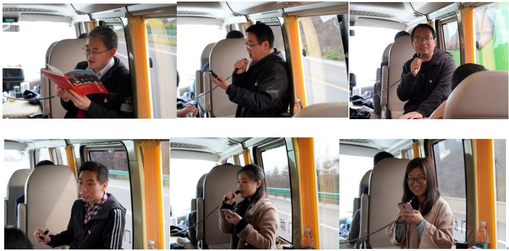 途中,同志们欢声笑语,气氛高涨,教工应化制药党支部书记徐抗震带领大家唱起红歌,分享在党史学习过程中的心得感悟。