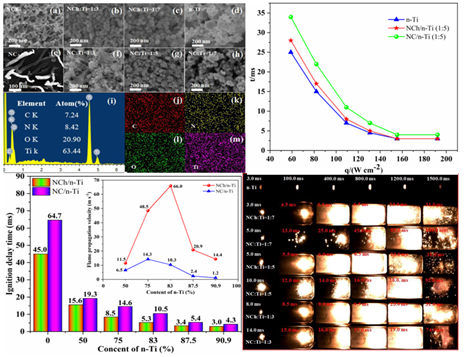 该项创新成果的第一完成人为世俱杯官网硕士生张文珍,指导老师为徐抗震教授和陈苏杭副教授。该项目首先对天然产物壳聚糖(CS)结构上的羟基和氨基活性位点的改造,使得硝基成功引入到结构之中,利用冰水萃取法首次开发了具有蜂窝状网络结构的新型含能材料:高取代度硝化壳聚糖(NCh)。然后利用其具有高能低感的特性和良好成气性的优势,作为黏结剂对纳米金属粉(n-Ti等)进行改性包覆,以提高纳米金属粉表面稳定性、改善其分散性能、抑制其烧结现象,并进一步引入纳米碳材料(氧化石墨烯(GO))作为稳定剂对燃烧剂的燃烧及安全特性进行调节。最终为固体推进剂燃烧剂的设计提供一种新型策略。