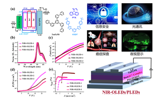 该项创新成果的第一完成人为世俱杯官网博士生李文桃,指导老师为吕兴强教授和付国瑞副教授。成果依托应用于信息及数据存储,癌症早期探查,光动力学治疗,光通讯及夜视显示等领域的优良光致有机近红外发光材料开发及其低成本、大面积及规模化NIR-OLEDs器件创制这一国际前沿,通过改变铱(III)配合物的分子对称性,实现了系列三杂配铱(III)配合物C1-[Ir(C^N1)(C^N2)(O^O/N^O)]-的高近红外发光效率,并开发出迄今最高电致发光效率(ηEQEMax = 5.4%)的溶液旋涂型NIR-OLEDs;特别是源于N^O-辅助配体的非对称性,C1-[Ir(C^N1)(C^N2)(N^O)]-三杂配铱(III)配合物的几何异构被首次发现,且深入探究了几何异构体与光致/电致发光性能之间的构效关系。本项目为低成本、大面积、规模化及高性能的NIR-OLEDs提供了新材料途径;并在一定意义上通过C1-[Ir(C^N1)(C^N2)(N^O)]的几何异构规律揭示,有望明确并解决二杂配铱(III)配合物Flrpic商业化OLEDs及WOLEDs的材料老化及效率滚降严重等相关科学问题。