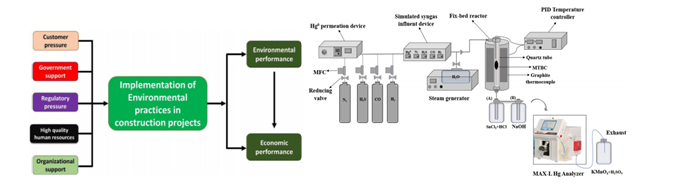 该项创新成果的第一完成人为世俱杯官网博士留学生Ahsan Riaz Khan,指导老师为郑茂盛教授和滕海鹏副教授。主要针对建筑业废弃物的管理及其最小化的决定因素,以及磁性生物炭去除气相Hg0的催化吸附与氧化等进行研究。主要涉及建筑业废弃物的管理及其最小化的决定因素分析、磁性生物炭去除气相Hg0的技术研究两部分内容。本研究通过评估不同的干预措施在降低环境风险方面的有效性,其中采用了159个巴基斯坦建筑公司产生的废料相关的数据。组织和政府支持、监管压力、经济和环境绩效是本研究所涉及的主要干预措施(因素)。通过对一系列干预措施(因素)进行假设检验,利用最小二乘法对所收集到的数据进行评估和结果预测。通过负载Fe(NO3)3的废茶叶在500℃采用一步热解方法制备了一种极可再生性的磁性茶叶生物炭(MTBC),并利用分析技术进行了表征。在较宽的温度范围内(60℃–300 ℃),模拟研究了其在合成气中对Hg0的吸附/氧化脱除规律。