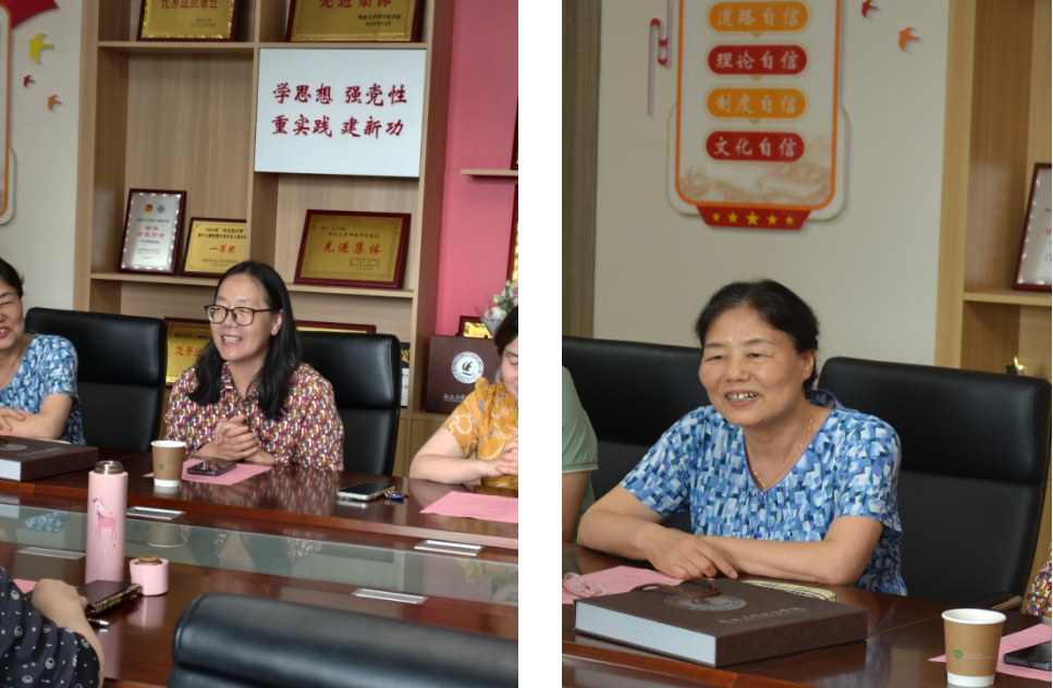 退休教师王飞利深情回顾了四十余载从教生涯,分享了她从化工企业到高校教学岗位的转变历程与育人心得,强调教师需终身学习,并衷心祝愿学院未来发展更上新台阶。赵彬侠老师感谢学院长期以来的关心与支持,她表示,岗位虽平凡,但学生的认可是最大回报,未来将继续心系学院发展。