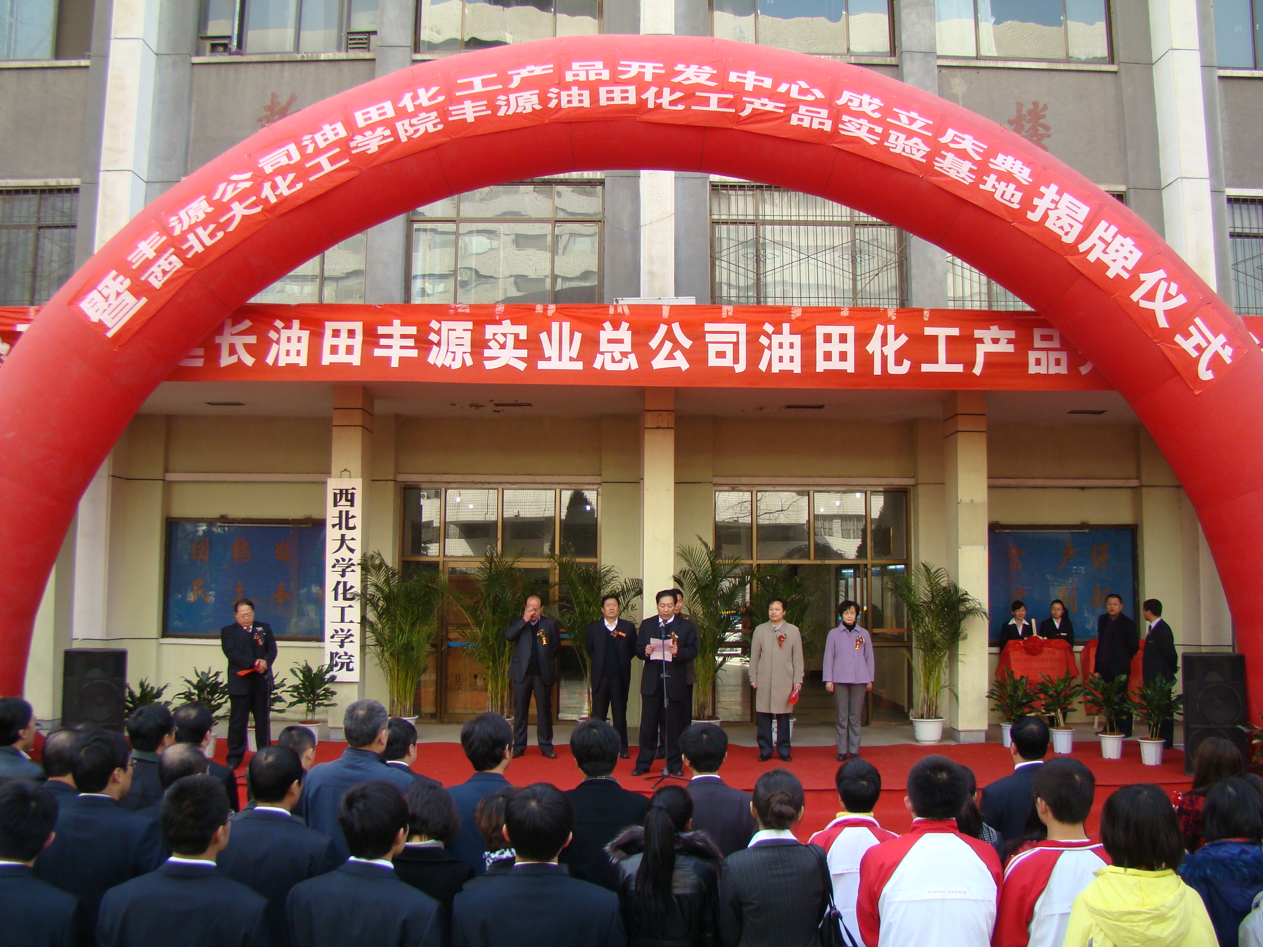 12月11日,世俱杯官网与延长油田丰源实业总公司联合共建的油田化工产品实验基地揭牌仪式在学院北门隆重举行。校党委常委、工会主席王望弟、延长油田副总经理刘仰明、延长油田丰源实业总公司党政班子成员、学院班子成员、课题组成员、丰源实业总公司职工代表、学院部分师生代表参加了揭牌仪式。