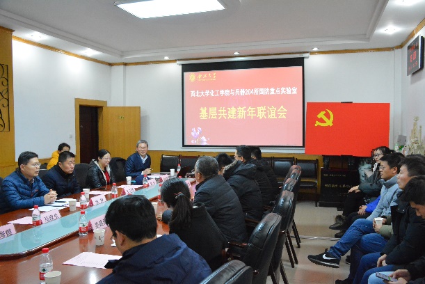 2019年12月31日下午,在兵器集团首席科学家赵凤起主任和重点实验室工会姜菡雨主席的带领下,兵器204所国防重点实验室一行15人来到世俱杯sjb官网,与世俱杯sjb官网进行了主题为“不忘初心、携手共进”的基层共建新年联谊会。世俱杯sjb官网副院长张琼、副院长王玉琪、院工会主席马政生及其他教师、博硕士研究生等50多人参加了本次基层共建联谊活动。联谊会由副院长徐抗震主持。