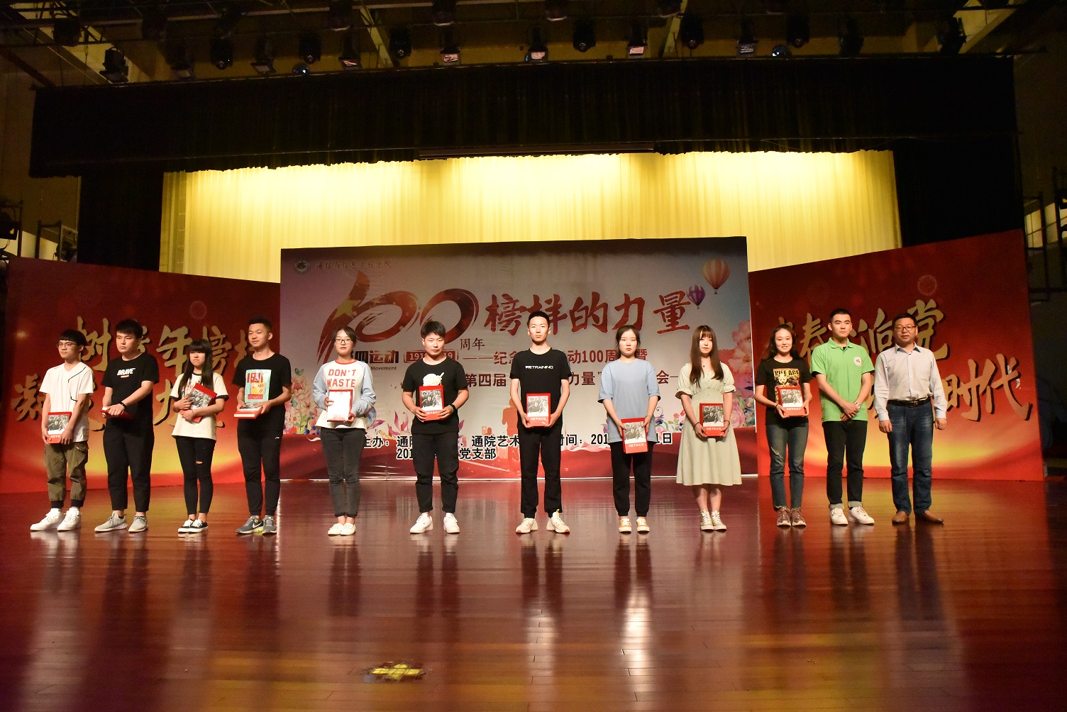 晚会最后在大家同唱的《我相信》中落下帷幕。此次晚会始终紧扣“百年五四”这一主题,将榜样与五四精神完美结合,这是通院学习贯彻党的十九大精神、落实立德树人根本任务、加强高校思想政治工作的成果展示,也是通院全体师生重温100年前那段激情燃烧的岁月,青春心向党,建功新时代,在新的历史时期继承和弘扬五四精神的实际行动。通院学子定会学习并发扬五四精神,响应时代的号召,为实现青年梦、中国梦,实现中华民族的伟大复兴,打下坚实的精神基础。