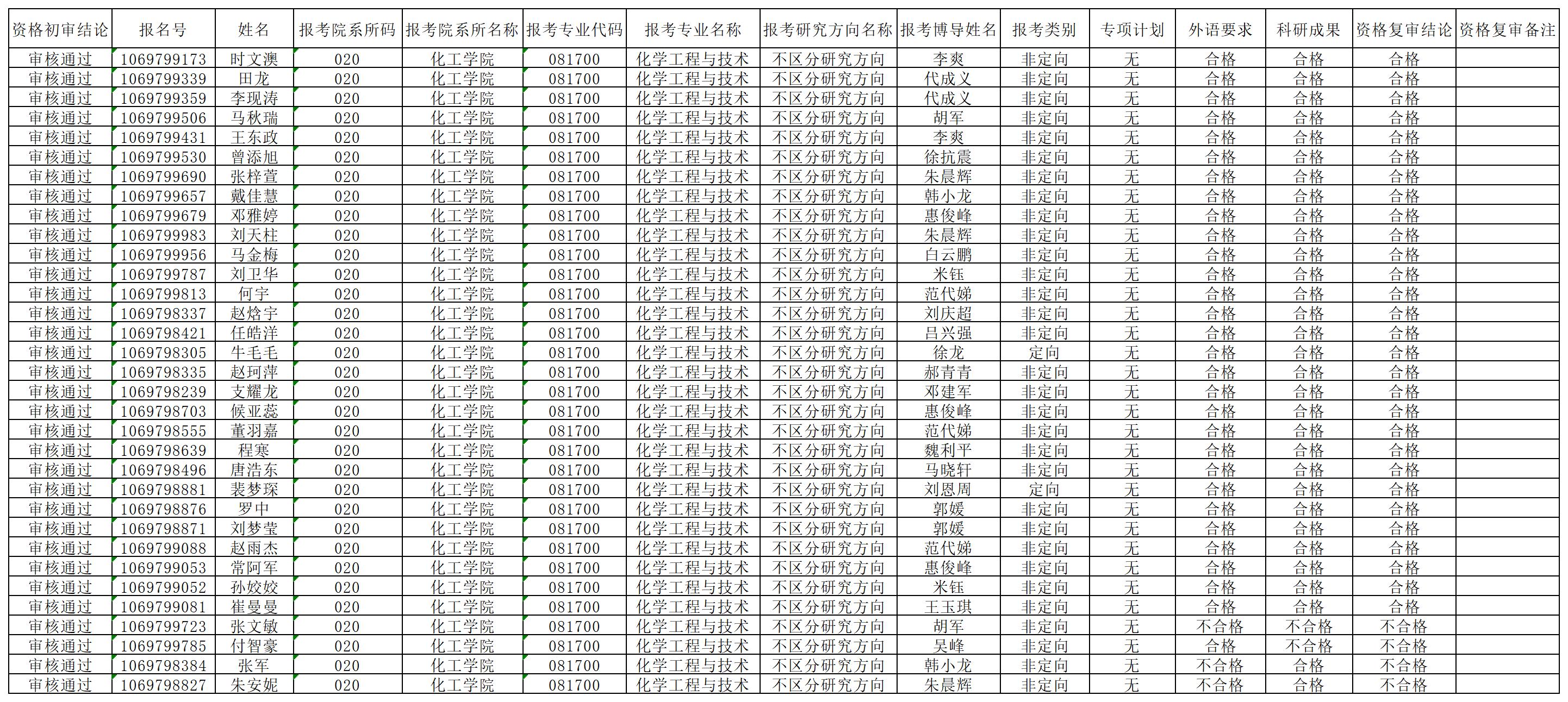表1“申请-审核”制复试考生名单