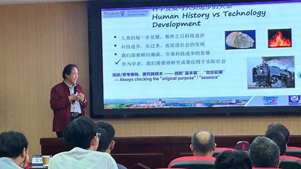 祝院士针对当前科研现状,指出部分科研工作者在追逐指标时忘却了对科学本真的追求,忘记了科学研究的初衷;强调科研人员应牢记科学研究的真正目的,主动肩负社会责任,顺应潮流、助力科技进步,推动社会发展、造福人类,同时使自己成为真正对社会、对人类有贡献的科研人员。他深入阐述了基础研究与应用研究的关系,认为基础研究为社会积累知识,应用研究为社会创造价值;基础研究为应用研究奠定基础、应用研究给基础研究指引方向,二者相辅相成。科研人员需平衡好两者关系,更需要“深刻”了解自己的个性,设计好自己的科研之路,从而发挥自身特长有效地服务于社会。会上,他通过自身研究与开发的实践,从多个角度诠释科学的本真与研究开发的初衷,结合自己的实际案例展示了成功开展科学研究的 “秘诀”,分享了培养科学研究能力的 “真谛”,鼓励科研人员和工程师通过阅读文史社科作品拓宽眼界,承担更广泛的社会责任。