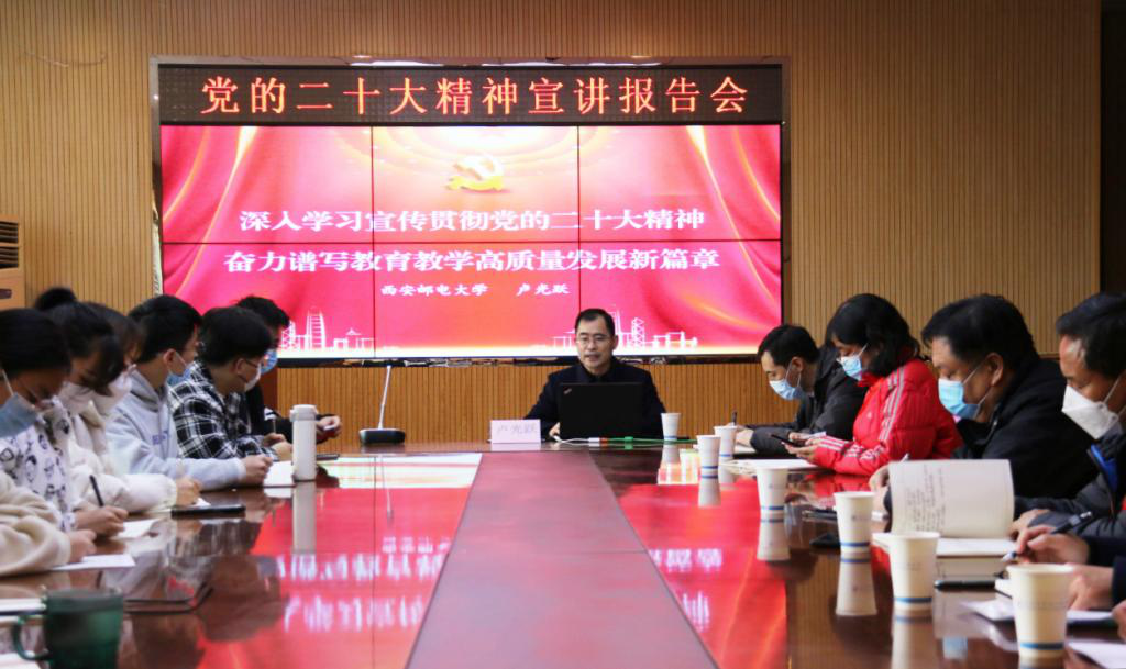 11月25日下午,副校长卢光跃在bwin必赢会议室作党的二十大精神宣讲报告。教务处、国际合作与交流处(港澳台办公室)、教师发展中心、教学质量监控与评估办公室、体育部全体人员,bwin必赢党委理论学习中心组成员、通信工程系教师党支部全体党员、学院各学生党支部、党员工作站学生代表、信息工程专业2021级学生、通工2209班学生共200余人线上线下参加报告会。报告会由bwin必赢党委书记田卫蒙主持。