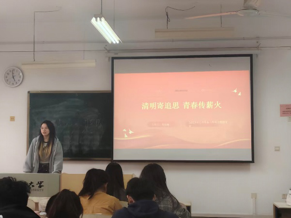 2023级各团支部开展了以“清明寄追思 青春传薪火”为主题的团日活动,通过图片,视频等形式让同学们看到在战火纷飞的年代,先烈们坚守信仰、舍生忘死,用热血为我们铺就如今的和平之路。同学们深知,这份幸福来之不易,是无数英烈用生命换来的。作为一名新时代的共青团员,应当通过此次主题教育活动用心铭记历史、传承精神,砥砺奋进,不负韶华。