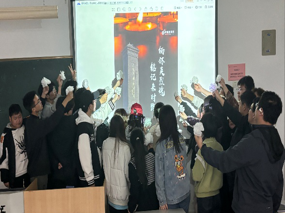 2024级各团支部的各班同学则在团支书的带领下,为先辈献花,默哀。在这样有着纪念意义的活动中,同学们深刻意识到,如今我们正身处和平年代,搭乘着历史的列车一路疾驰,沿途尽是繁华盛景。但无论行至多远,那些来时的路,永远都不该被遗忘。