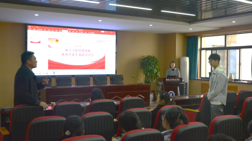 为更好的发挥学院优秀毕业生的示范引领作用,激发朋辈辐射效能,助力同学们明晰未来发展的方向、汲取成长力量,学院灯塔党团工作室以“灯塔领航”为主线开展优秀毕业生事迹分享交流活动。2025年3月20日,学院举办了第一期灯塔领航优秀毕业生事迹分享会,党委书记寇楠,辅导员张宁、张悦、周少荷及学院党团员学生代表参加本次活动。