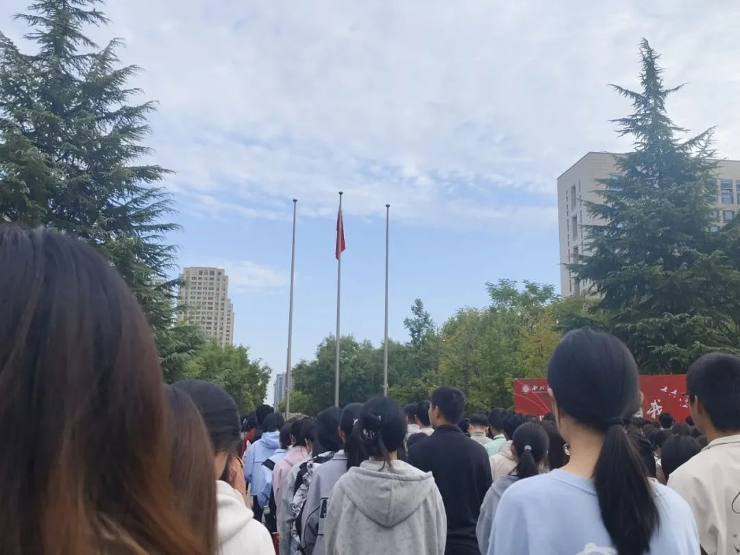 这张图是2024年10月1日,为庆祝祖国七十五周年华诞,我校在操场举行升旗仪式,现场气氛庄严肃穆。学校仪仗队身姿挺拔、步伐整齐,迈着坚定有力的正步护送国旗走向升旗台。当激昂的国歌声响起,五星红旗冉冉升起,师生面向国旗行注目礼,眼神中满是对祖国的热爱与敬意。这一时刻,被定格为照片,成为校园里难忘的爱国记忆。