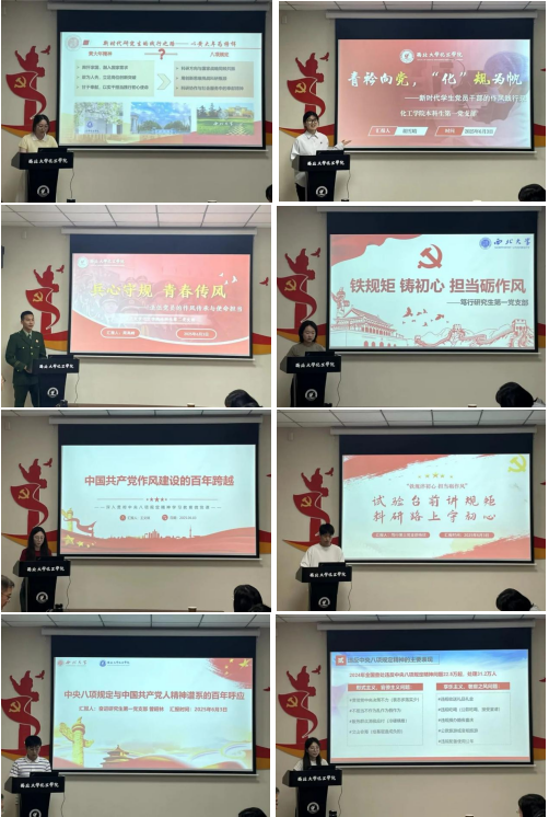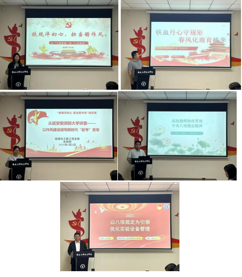 学院教工、学生党支部书记以深入贯彻中央八项规定精神学习教育为主题主线进行展开,讲述的微党课主题鲜明、内容丰富、形式多样。或从涌现的先进典型和身边榜样的感人事迹入手;或从党的百年艰辛奋斗历程和优良传统切入;或根据自己的学习理解解读中央八项规定及实施细则的精神实质和丰富内涵;或结合自身教学科研讲述如何将中央八项规定精神融入各项工作中,以优良作风推动工作高效开展。大家通过生动事例和学习体会表达了对中央八项规定及实施细则的精神实质和丰富内涵深刻理解,以见微知著的方式,让党的作风建设进一步深入人心,推动作风建设常态化长效化。