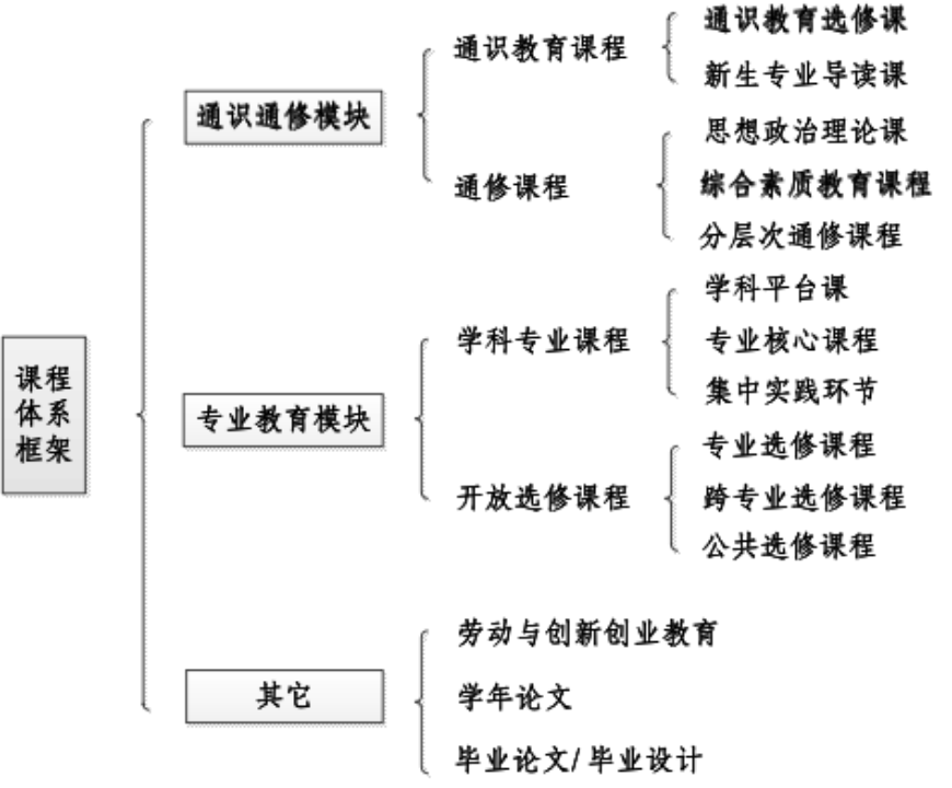 通识通修课程共计23门,其中必修58.5学分,选修10学分课程。 |